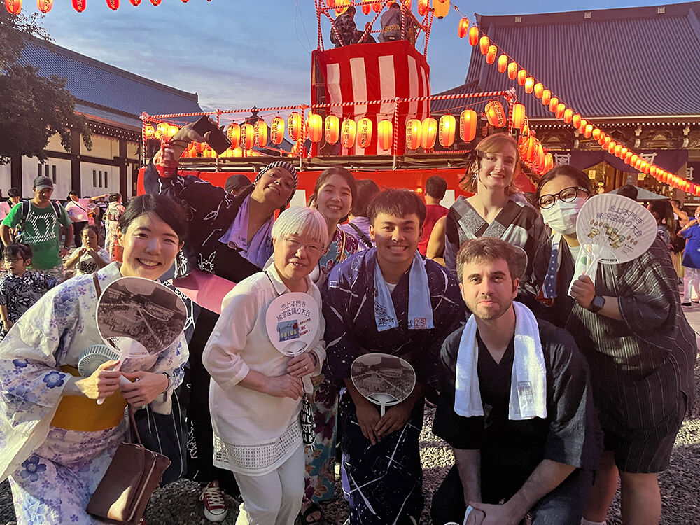 Du học sinh tận hưởng lễ Obon cùng người bản xứ tại đền Ikegami Honmonji.