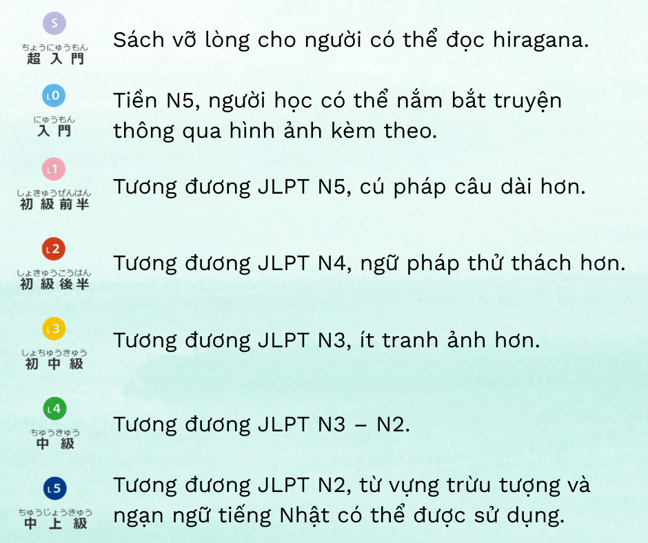 Bản phân loại cấp độ sách của Tadoku Supporters