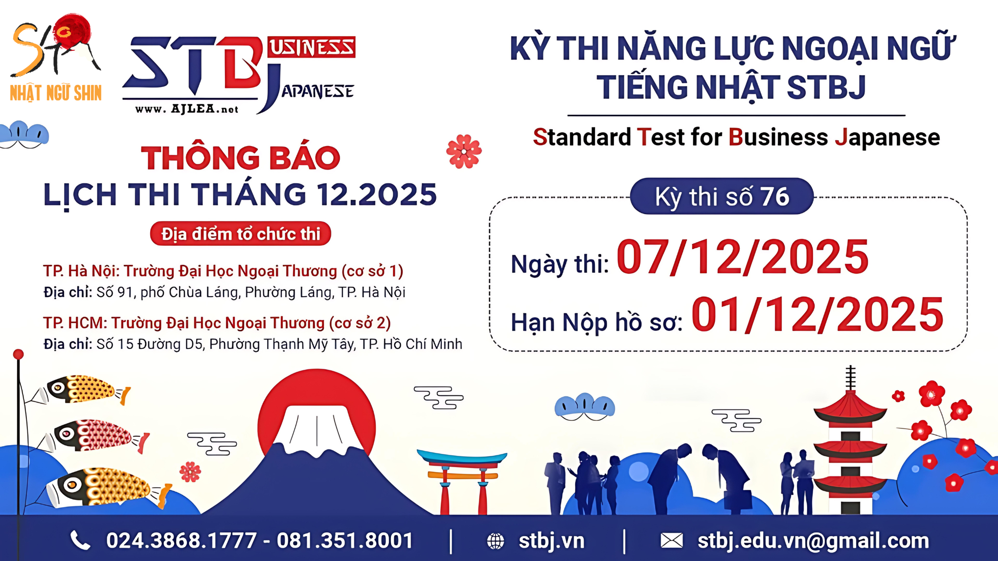 Đăng ký Kỳ thi Năng lực Nhật ngữ STBJ tháng 12/2025 tại Nhật ngữ SHIN