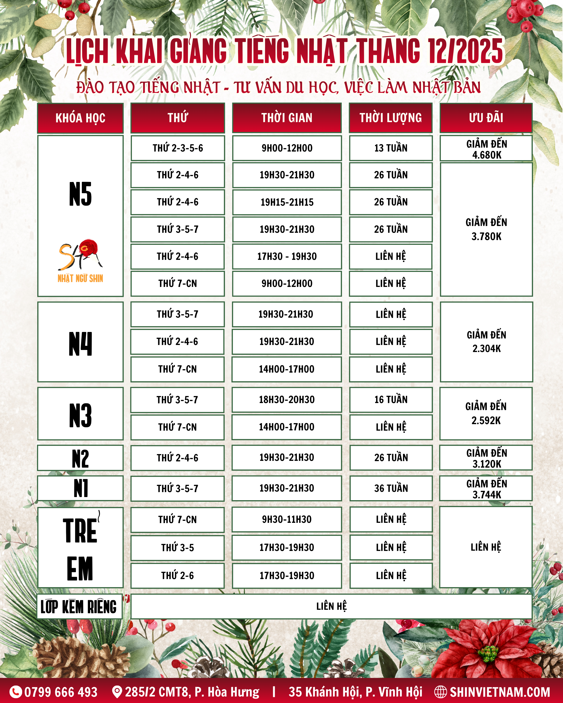 👉 THAM KHẢO NGAY LỊCH KHAI GIẢNG THÁNG 12/2025 TẠI SHIN VÀ CHỌN KHOÁ HỌC TIẾNG NHẬT PHÙ HỢP VỚI BẢN THÂN!
