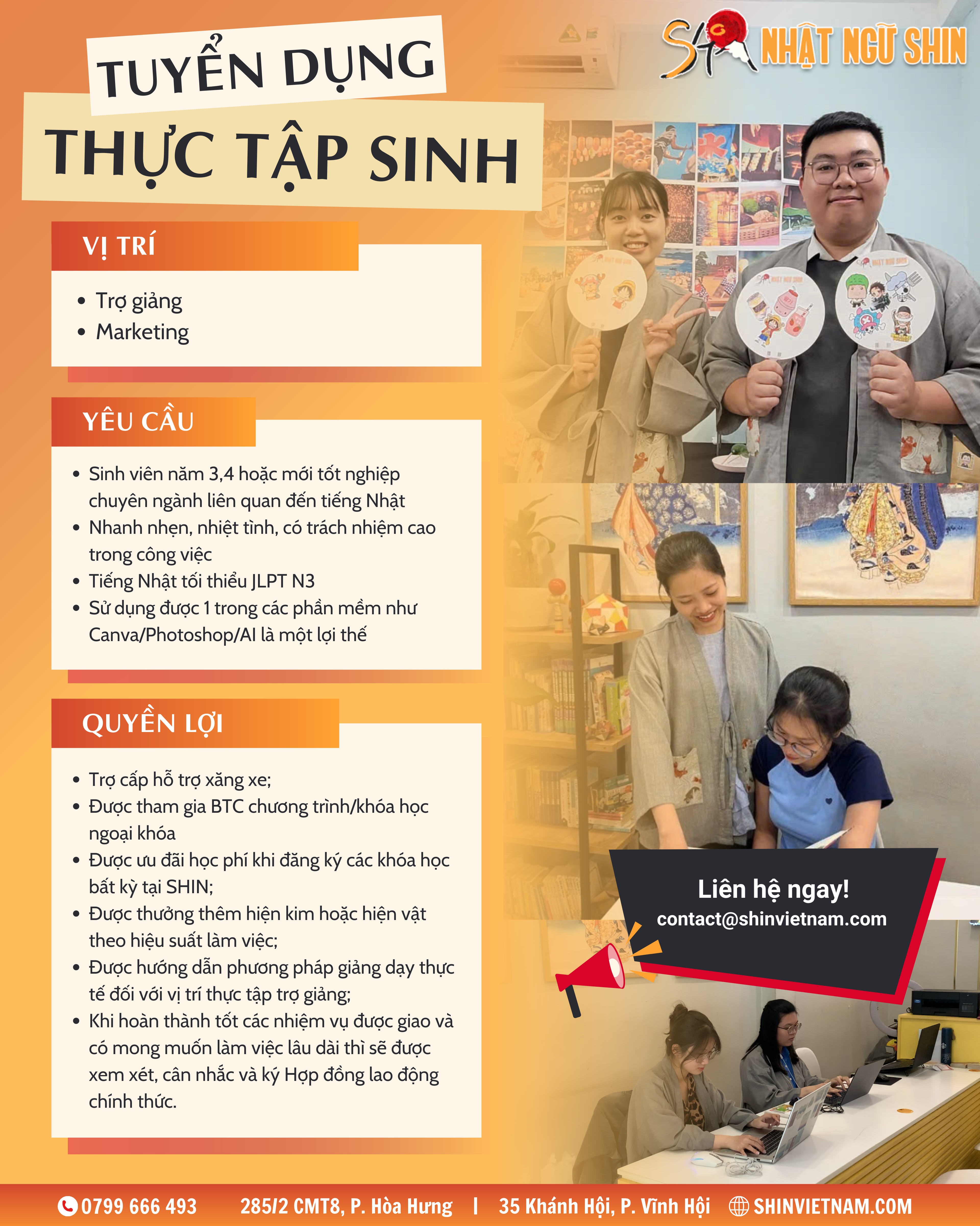 * Đặc biệt: Có cơ hội trở thành nhân viên chính thức tại Nhật ngữ SHIN