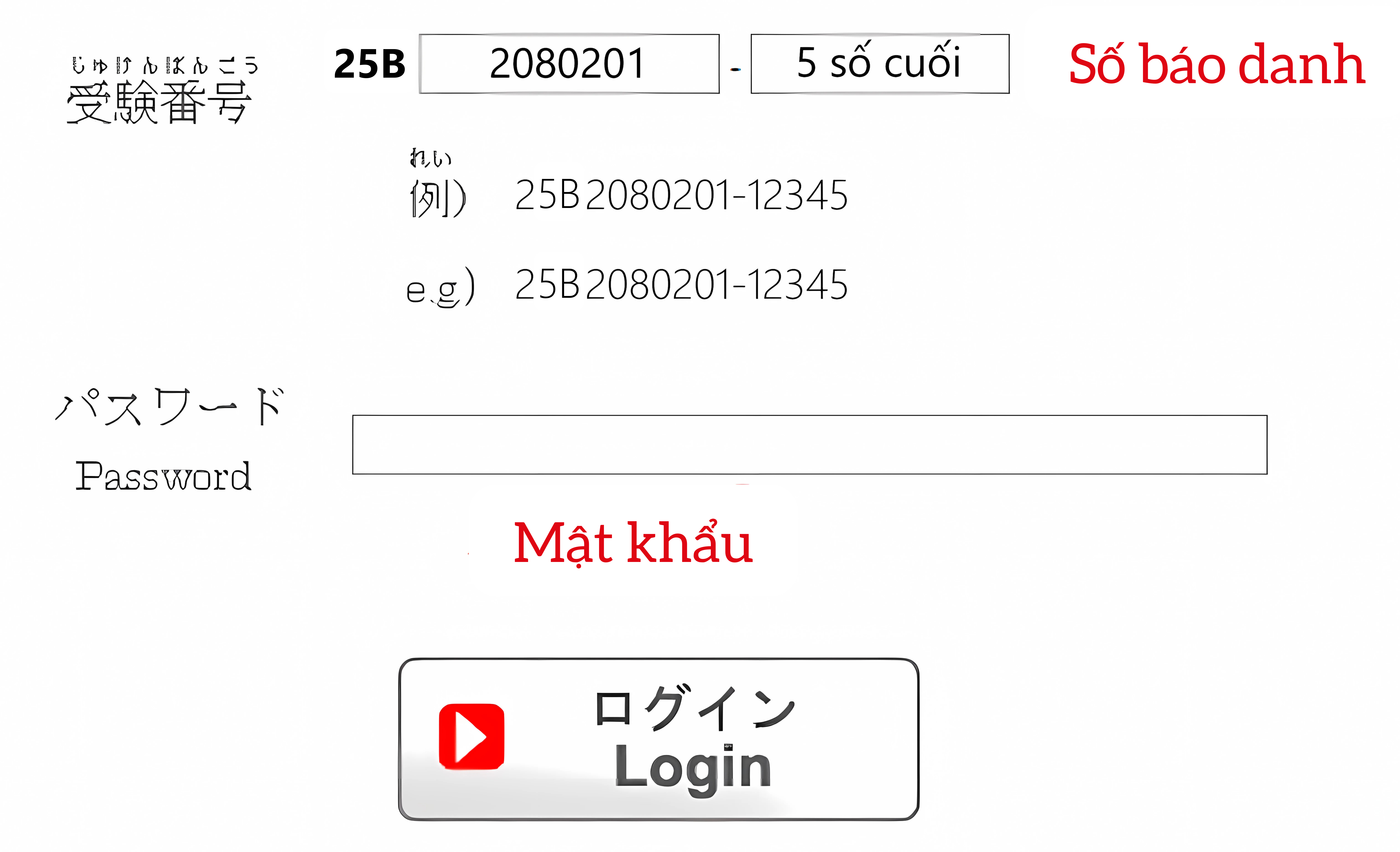 Bước 5: Bấm vào 「ログイン」(Login) để xem kết quả