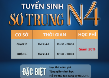 NHẬT NGỮ SHIN TUYỂN SINH CÁC LỚP N4 – SƠ TRUNG CẤP – Bạn đã học xong N5 và đang tìm nơi học N4 – Bạn đã học xong N4 nhưng dừng học đã lâu – Bạn đang tự học N4 nhưng hỏng kiến thức và học thiếu phương pháp Vậy thì hãy đến lớp