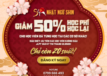 GIẢM 50% HỌC PHÍ HỌC LẠI CHO TẤT CẢ HỌC VIÊN 🔥ƯU TIÊN: HỌC VIÊN KHÔNG ĐẬU KÌ THI JLPT T12.2020 ⚡Giảm 50% học phí học lại: 🔥Đối tượng: Các học viên khóa N5, N4, N3 đã từng học tiếng Nhật tại bất kỳ cơ sở, trung tâm nào ⚡Ưu tiên: Học viên không