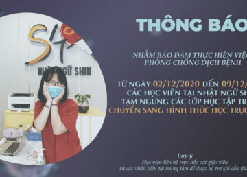 THÔNG BÁO: Nhằm thực hiện công tác phòng chống dịch bệnh, 📌Từ ngày 02/12/2020 đến ngày 09/12/2020, các học viên tại Nhật ngữ SHIN sẽ tạm ngừng học tập trung và chuyển sang hình thức học online, 📌Nhật ngữ SHIN mong rằng trong thời gian này, tất cả các bạn cố gắng