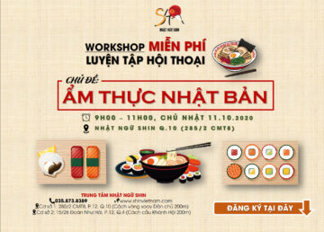 WORKSHOP LUYỆN GIAO TIẾP MIỄN PHÍ – NHẬT NGỮ SHIN Q.10 CHỦ ĐỀ: ẨM THỰC NHẬT BẢN 9H00 – 11H00 – Chủ nhật 11.10.2020 ️Một chủ đề thú vị mà hầu như bạn nào học tiếng Nhật cũng có kiến thức nền nhưng đâu phải mấy khi có dịp vận dụng những hiểu biết của