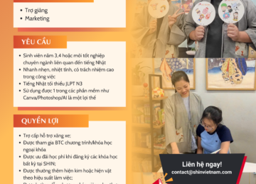 NHẬT NGỮ SHIN TUYỂN DỤNG VỊ TRÍ THỰC TẬP SINH 2025-2026 ✅ Số lượng: 03; ✅ Thời gian thực tập: 3 – 6 tháng; ✅ Đối tượng: sinh viên năm 3, 4 hoặc mới tốt nghiệp; ✅ Các bộ phận tuyển thực tập sinh: trợ giảng, design, marketing; ✅ Yêu cầu: Nhanh nhẹn, nhiệt tình,